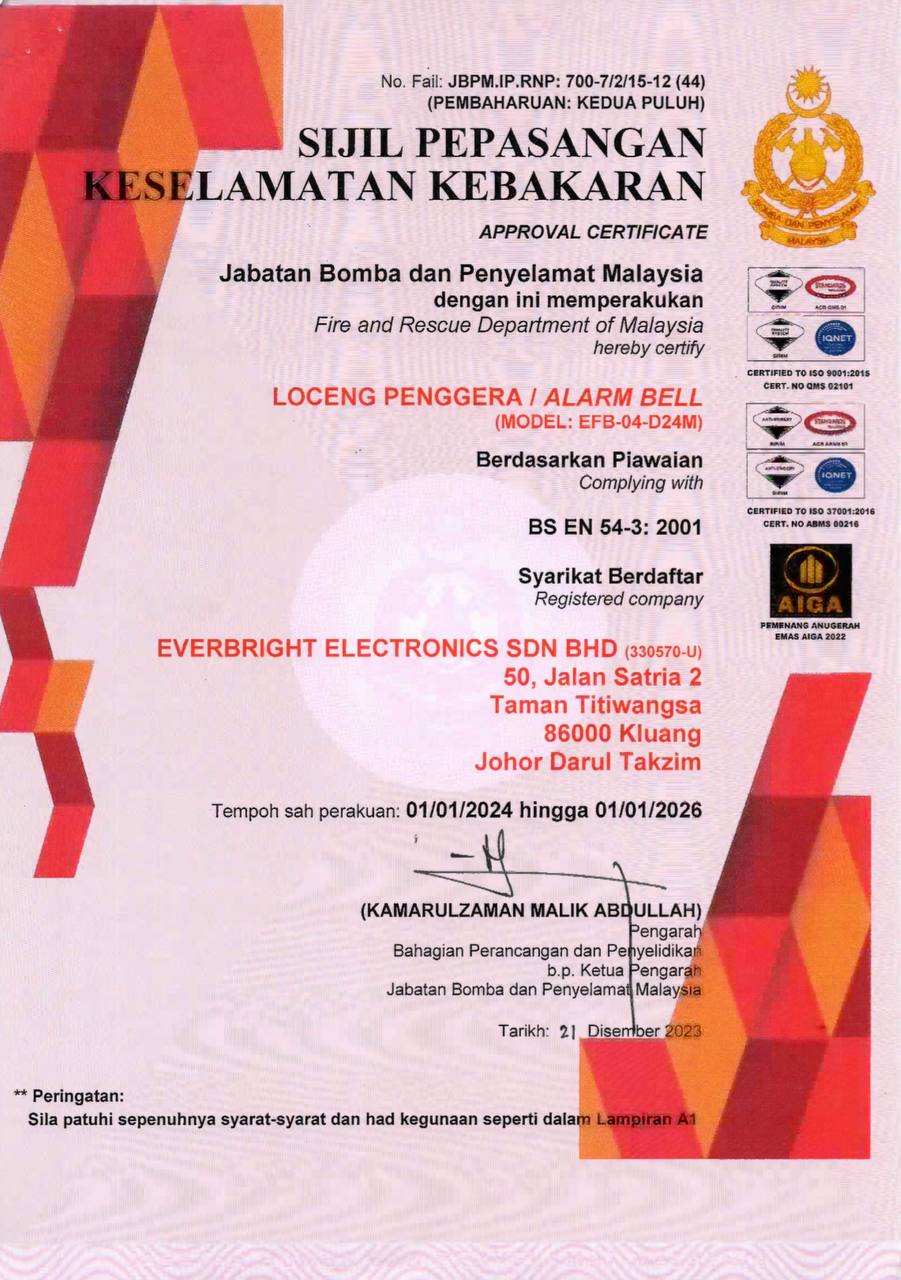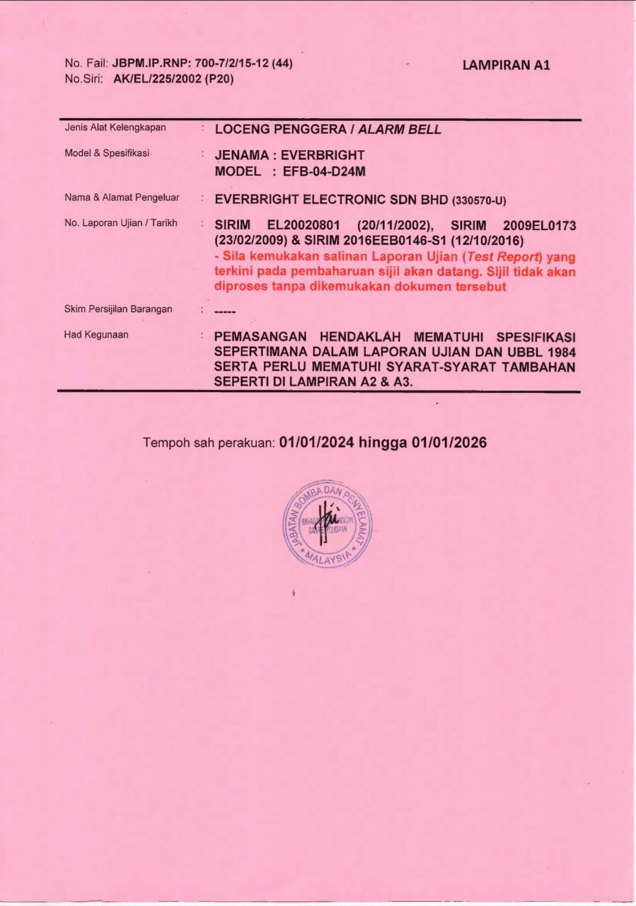 Bomba certificate – Alarm Bell